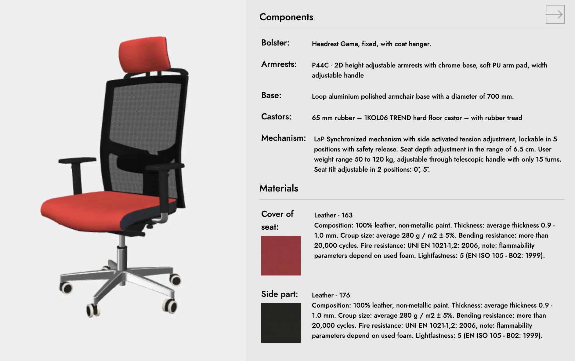 The chair is equipped with an adjustable rocking mechanism that allows for various sitting positions, backrest adjustment, gas spring mechanism for stepless height adjustment, and adjustable armrests and headrest. In addition, the PILOT TRIMAC has a seat cushion with depth and tilt adjustment, which provides extra comfort and support for taller people.